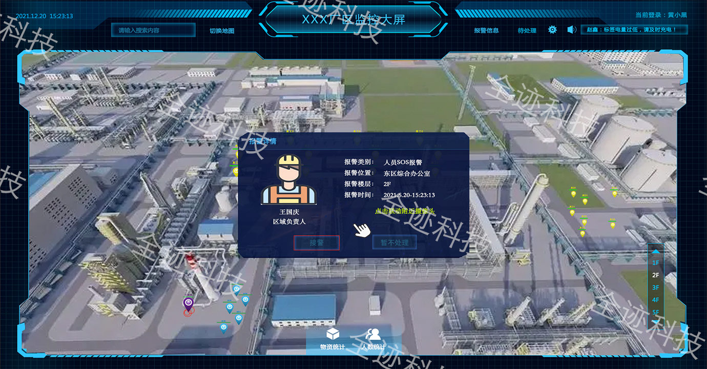 支持單人一鍵呼救SOS,如遇系統(tǒng)性故障中控臺可一鍵通知全員撤離。