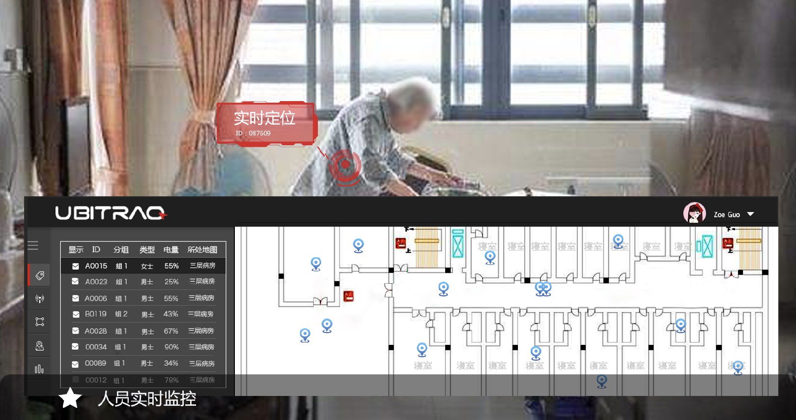 全跡科技養(yǎng)老行業(yè)高精度定位管理系統(tǒng)使用UWB室內(nèi)定位技術(shù),通過在被看護人身上佩戴定位標(biāo)簽,與養(yǎng)老院內(nèi)安裝的定位基站無線連接,實現(xiàn)對被看護人的精準(zhǔn)定位。管理人員可設(shè)定電子圍欄,被監(jiān)護人在離開規(guī)定區(qū)域或超出時間,后臺會觸發(fā)警報。老人在發(fā)生意外時可以通過緊急求救按鈕向管理人員發(fā)出求救信號,管理人員可及時得到老人求救信息和準(zhǔn)確位置,進行緊急救助。同時手環(huán)型定位標(biāo)簽可以遠程監(jiān)控老人心率、血氧、脈搏、血氧指標(biāo)等功能。
