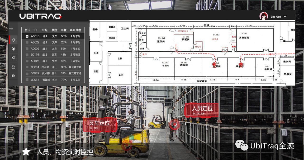 全跡科技倉儲/物流高精度定位管理系統使用UWB室內定位技術,通過在倉庫內安裝定位基站,在人員、車輛、資產、工具上配備定位標簽,精準地將人、車、物的位置信息顯示在物流倉儲控制中心,精度優于0.5米,實現人員、車輛、資產、工具、生產精細化管理,精確管控以精益生產、合理調度安排、提高智慧工廠管理水平。