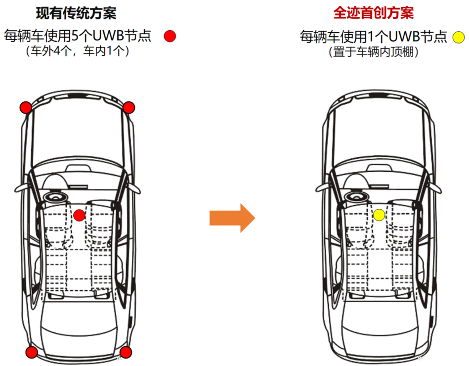 汽車領域:全跡UWB-AOA單基站大幅減少汽車數字鑰匙節點數量,整車單錨點技術替代傳統5錨點,已獲發明專利授權。